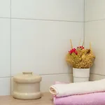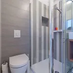 Koupelna má prostornou sprchu a samostatnou toaletu, zatímco pokoj má pohovku, pracovní stůl, přístroj na přípravu kávy a čaje.